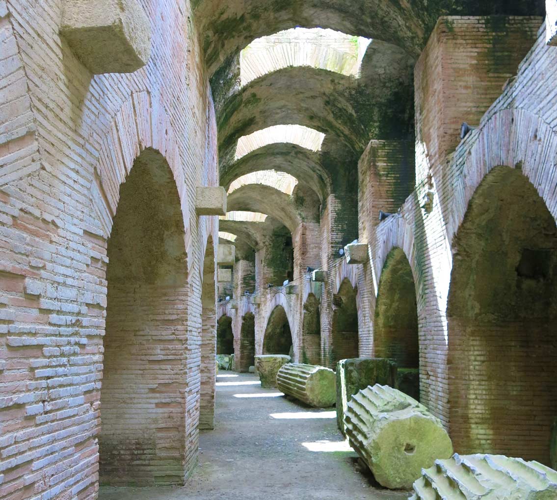 Termas Impriales de Baia - Anfiteatro Flavio de Pozzuoli - Lago Averno y Oráculo de la Sibila de CumasDespués de desayunar visitaremos el Anfiteatro Flavio, uno de los mejor conservados de Italia; los restos del mercado antiguo, y el excepcionalmente musealizado Templo de Augusto en Pozzuoli.